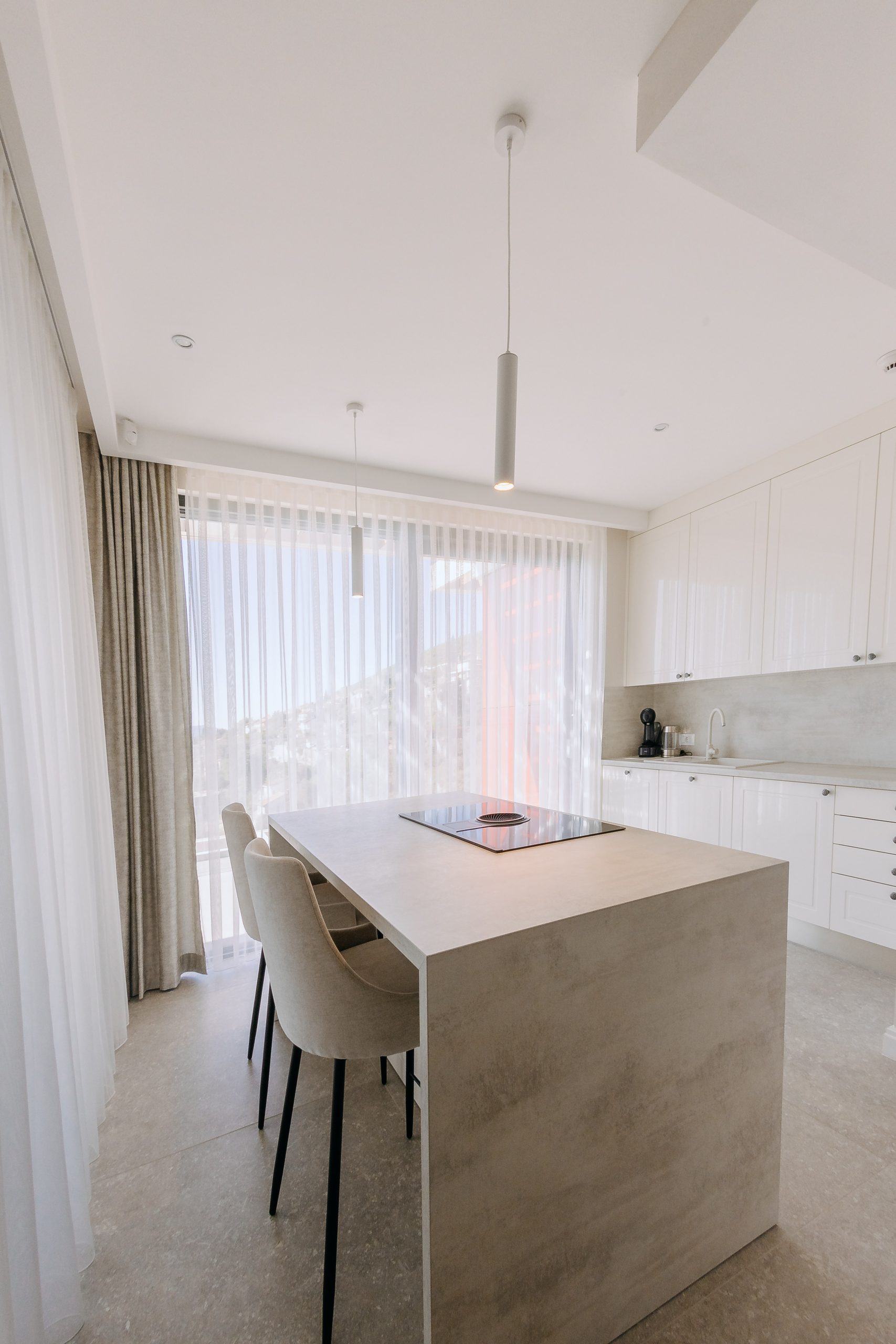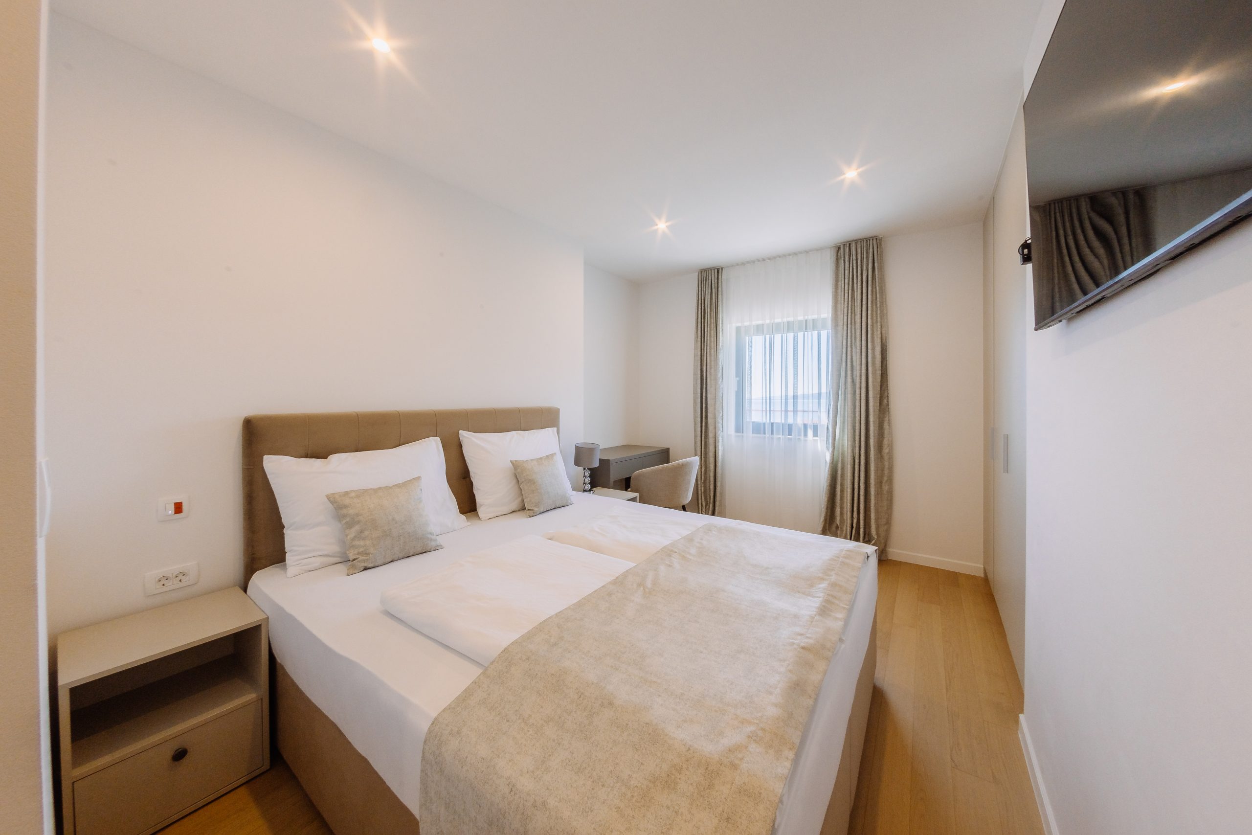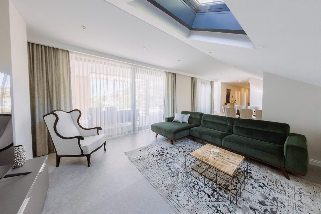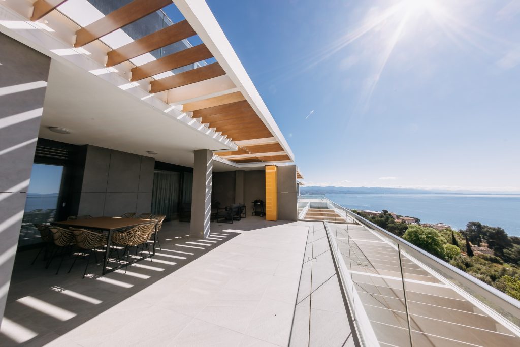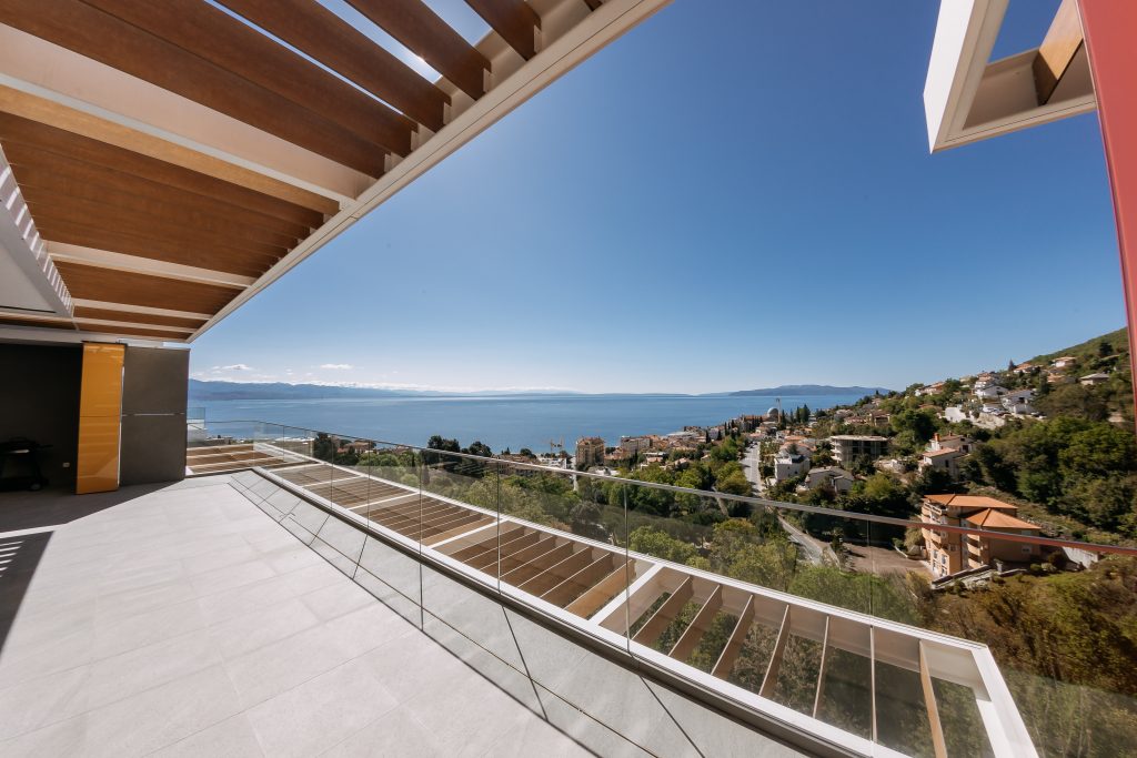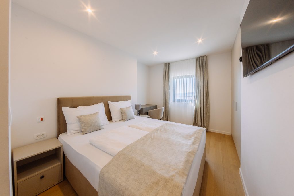 - Pogodnosti / Sadržaji: Klima uređaj, Kompletno opremljena kuhinja sa svim aparatima i posuđem, Kućni ogrtači i papuče, Luksuzan namještaj, Paket proizvoda za kupanje i njegu, Parking, Pogled na more, Posteljina i ručnici, Sat/TV, Sef, Smart Home tehnologija, Spavaća soba odvojena od dnevnog boravka, Sušilo za kosu, Terasa, Wi-Fi