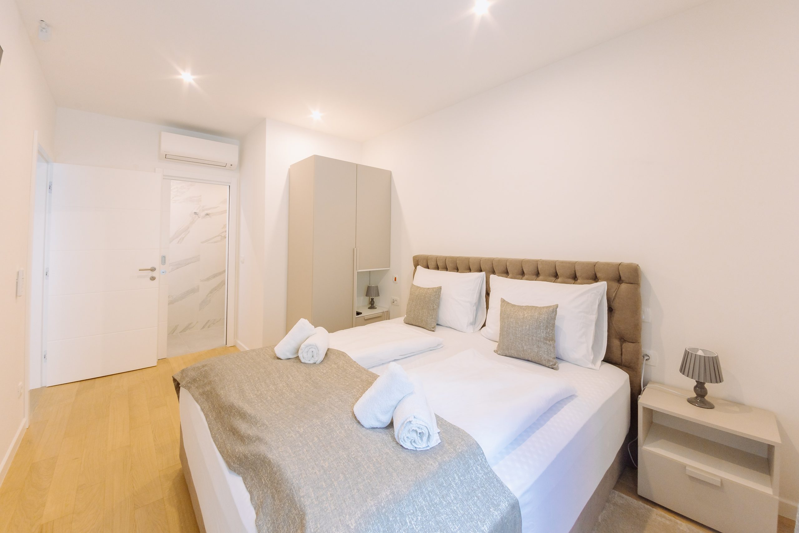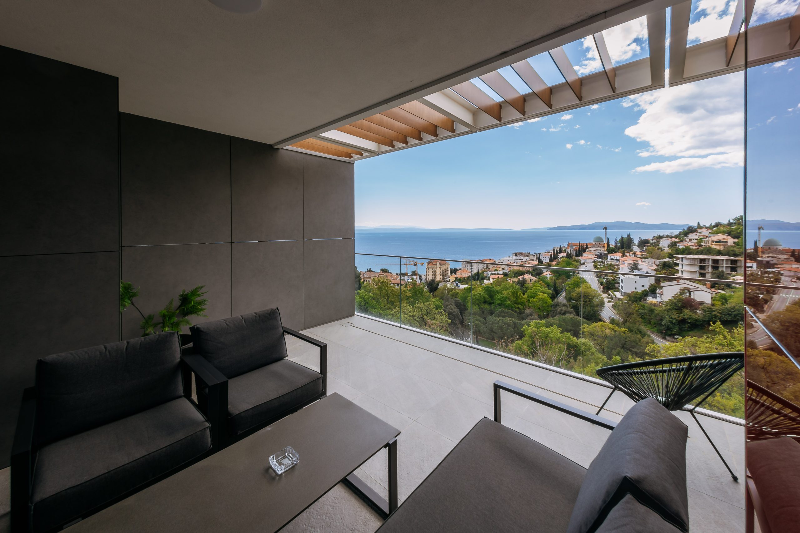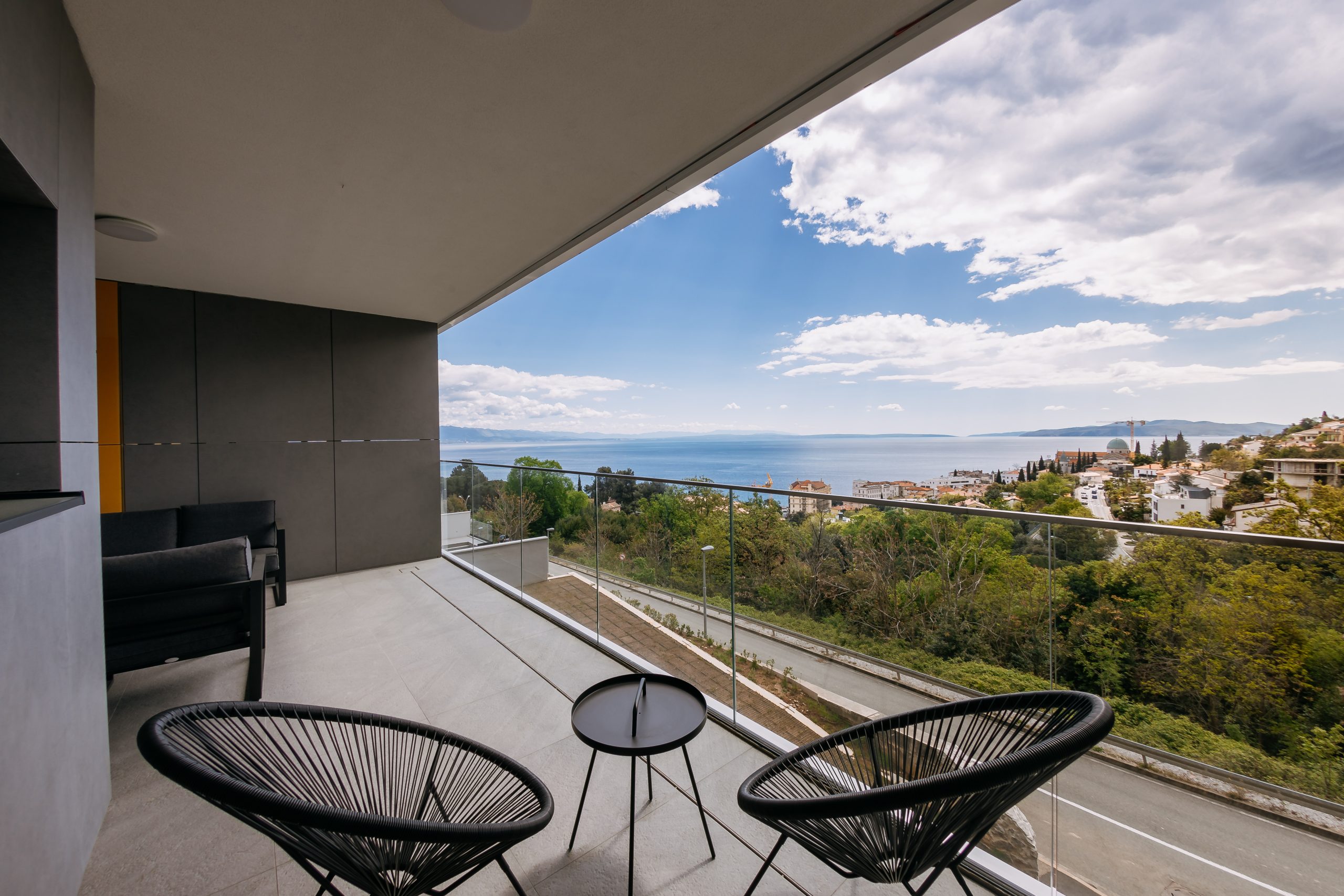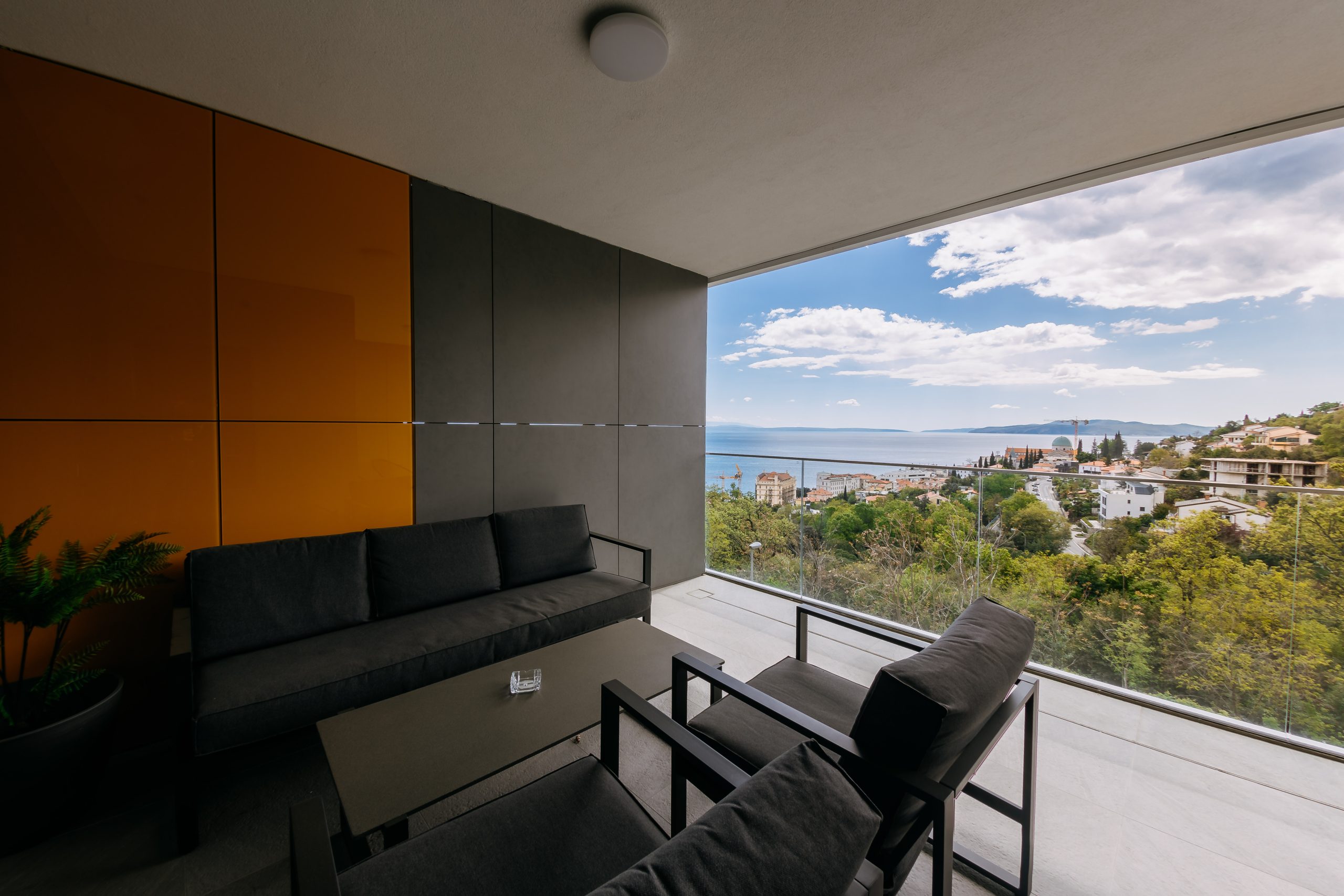 - Pogodnosti / Sadržaji: Klima uređaj, Kompletno opremljena kuhinja sa svim aparatima i posuđem, Kućni ogrtači i papuče, Luksuzan namještaj, Paket proizvoda za kupanje i njegu, Parking, Pogled na more, Posteljina i ručnici, Sat/TV, Sef, Smart Home tehnologija, Spavaća soba odvojena od dnevnog boravka, Sušilo za kosu, Terasa, Wi-Fi