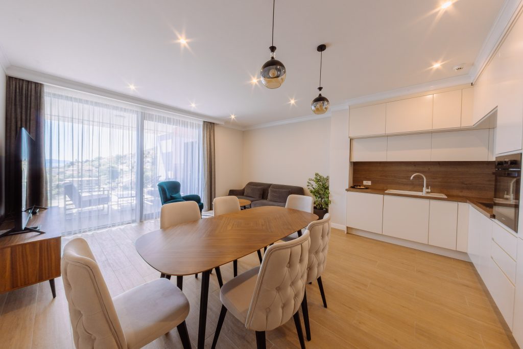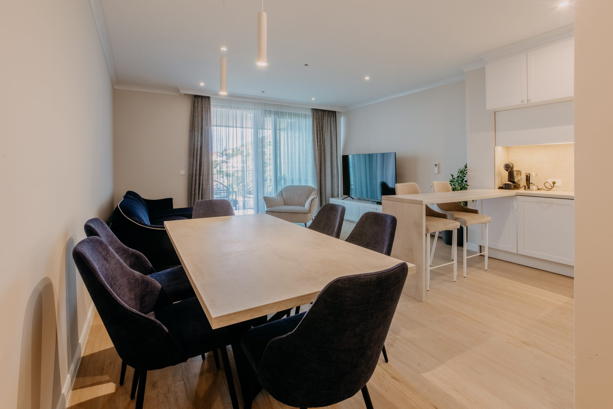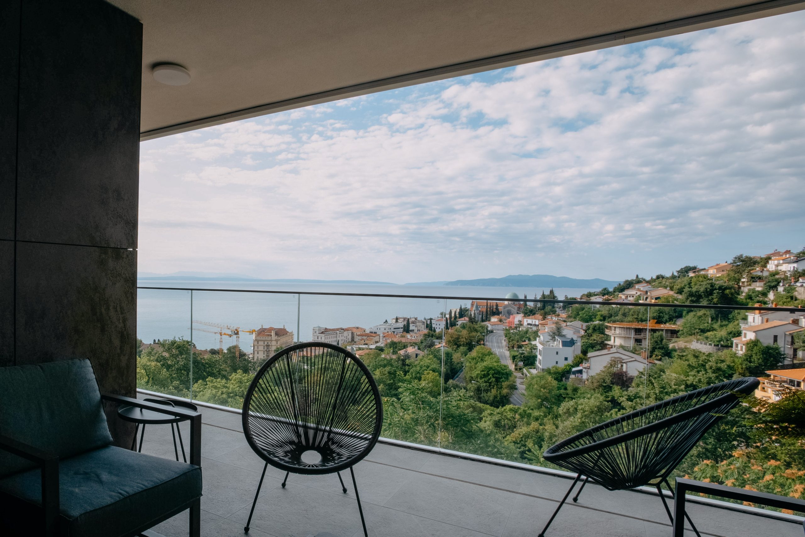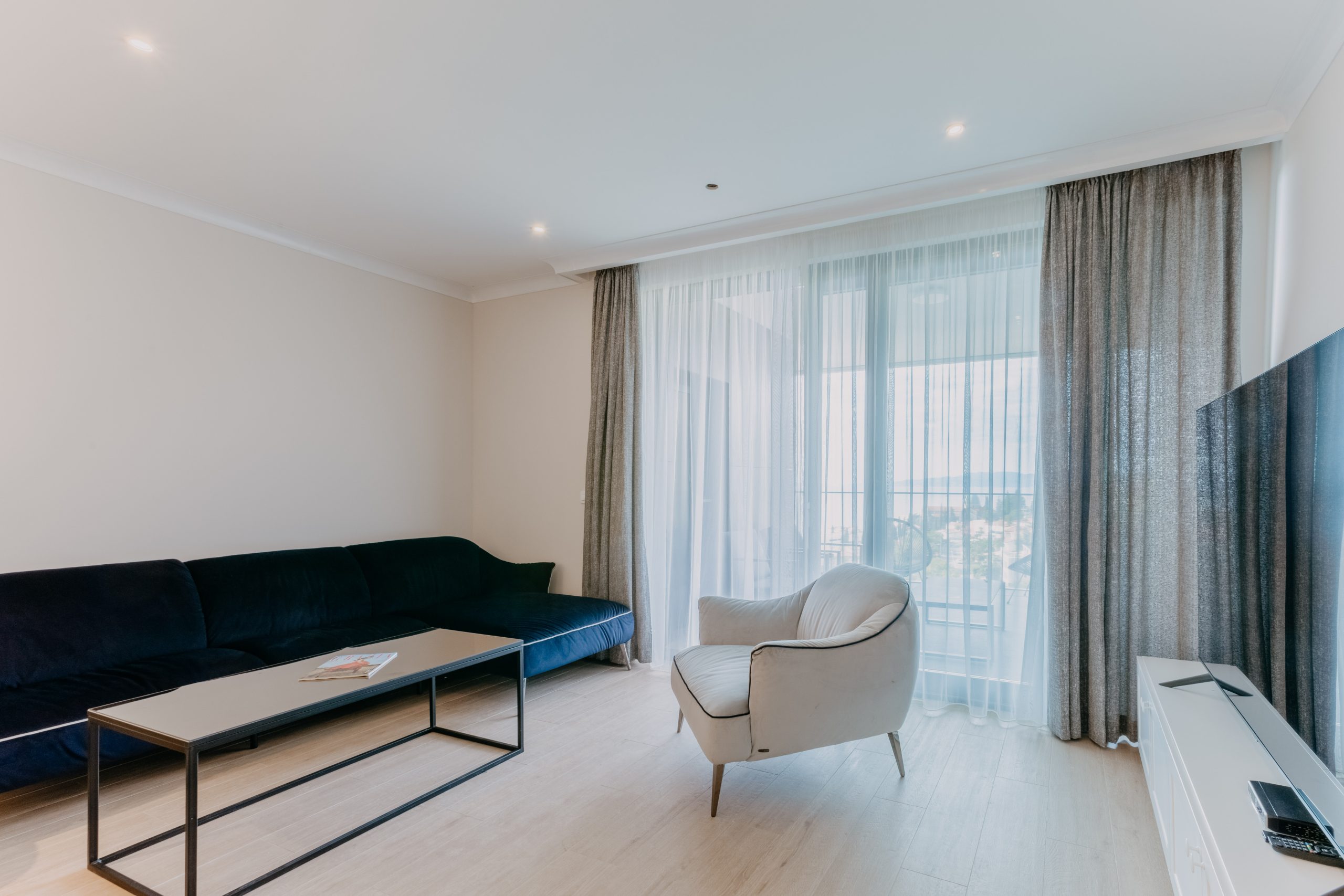 - Pogodnosti / Sadržaji: Klima uređaj, Kompletno opremljena kuhinja sa svim aparatima i posuđem, Kućni ogrtači i papuče, Luksuzan namještaj, Paket proizvoda za kupanje i njegu, Parking, Pogled na more, Posteljina i ručnici, Sat/TV, Sef, Smart Home tehnologija, Spavaća soba odvojena od dnevnog boravka, Sušilo za kosu, Terasa, Wi-Fi