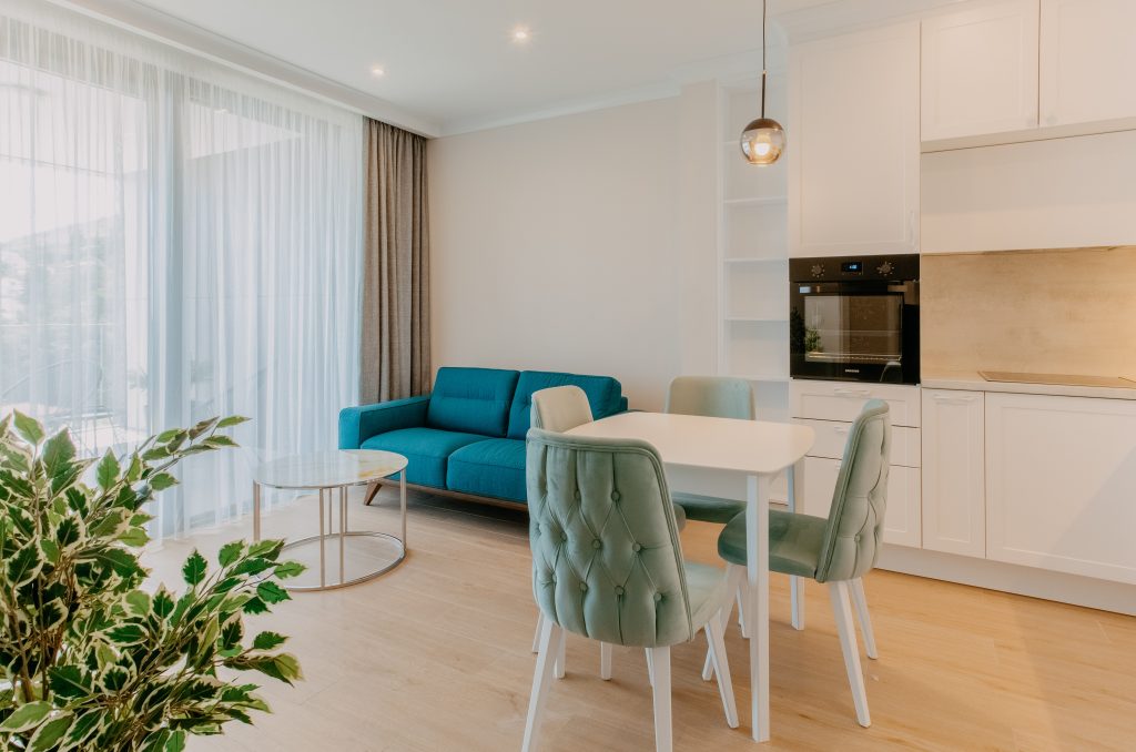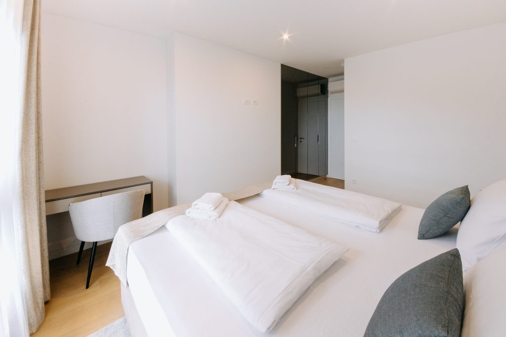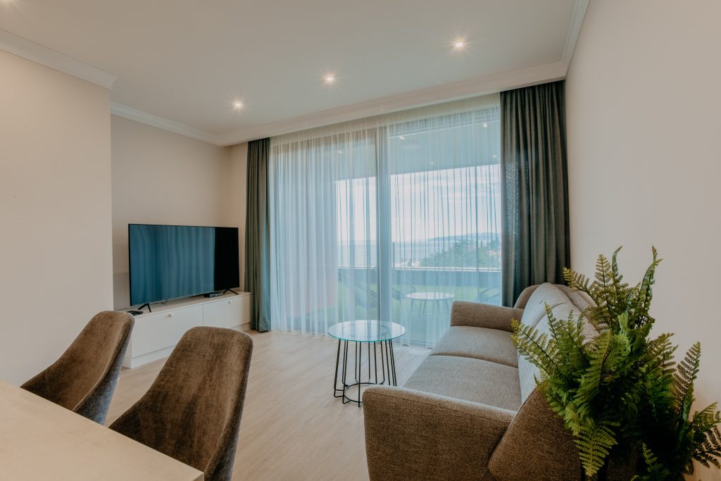 - Pogodnosti / Sadržaji: Klima uređaj, Kompletno opremljena kuhinja sa svim aparatima i posuđem, Luksuzan namještaj, Parking, Pogled na more, Posteljina i ručnici, Sat/TV, Sef, Spavaća soba odvojena od dnevnog boravka, Sušilo za kosu, Terasa, Wi-Fi