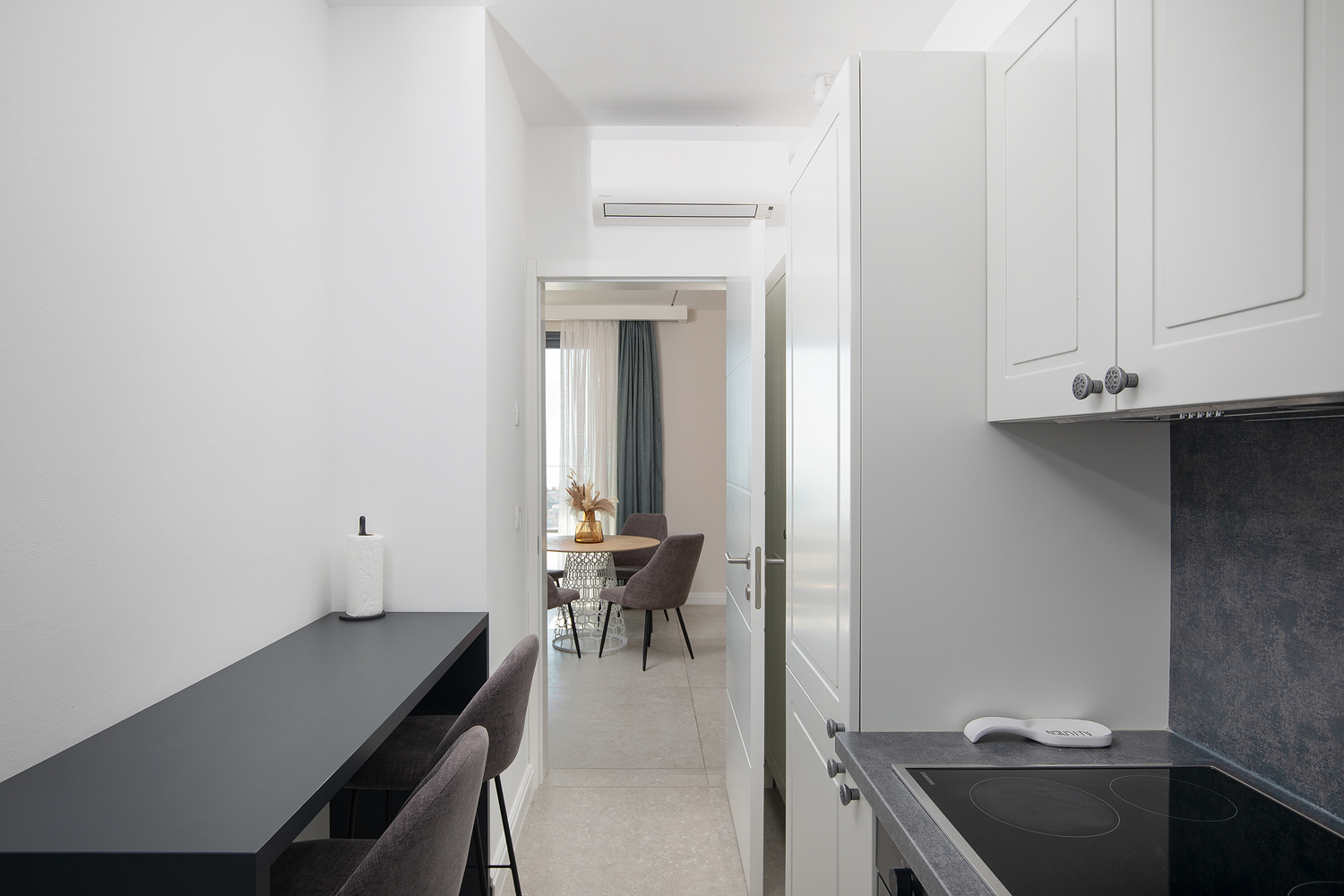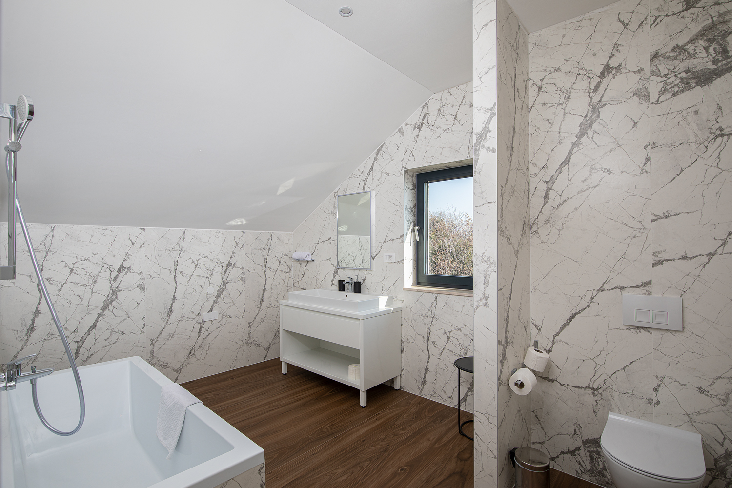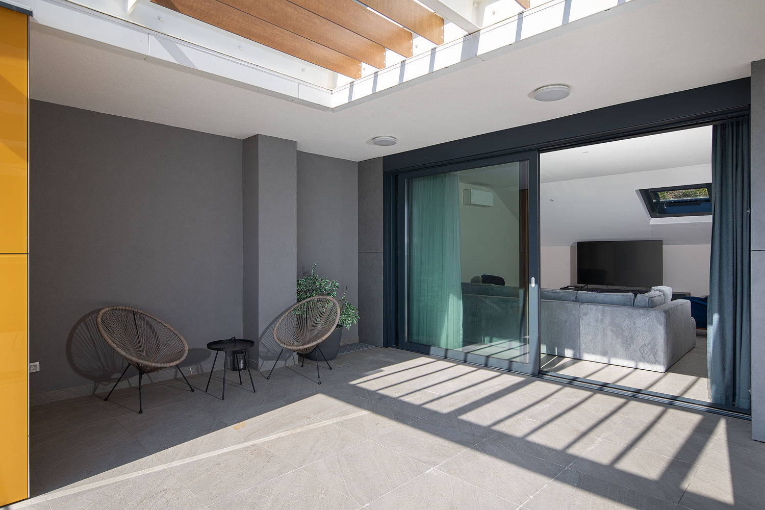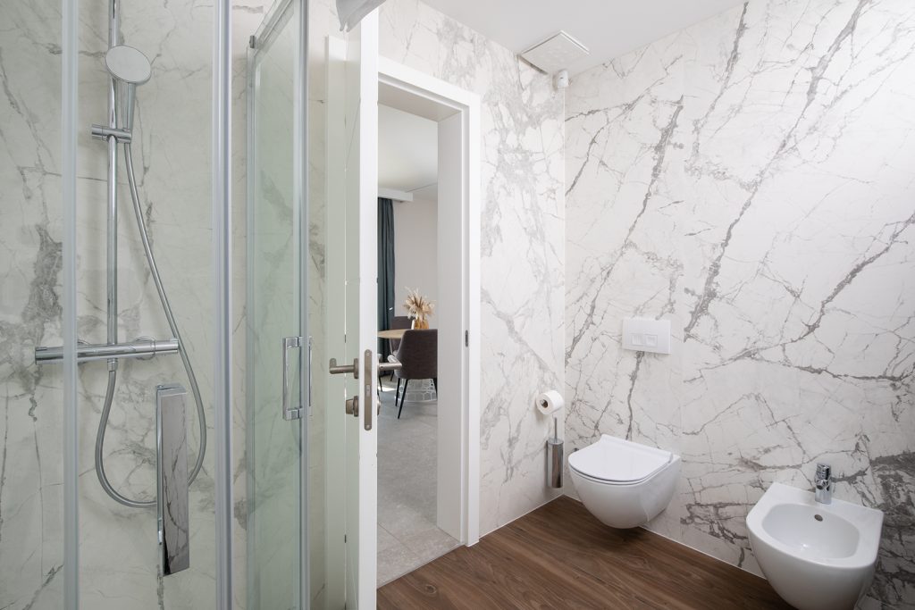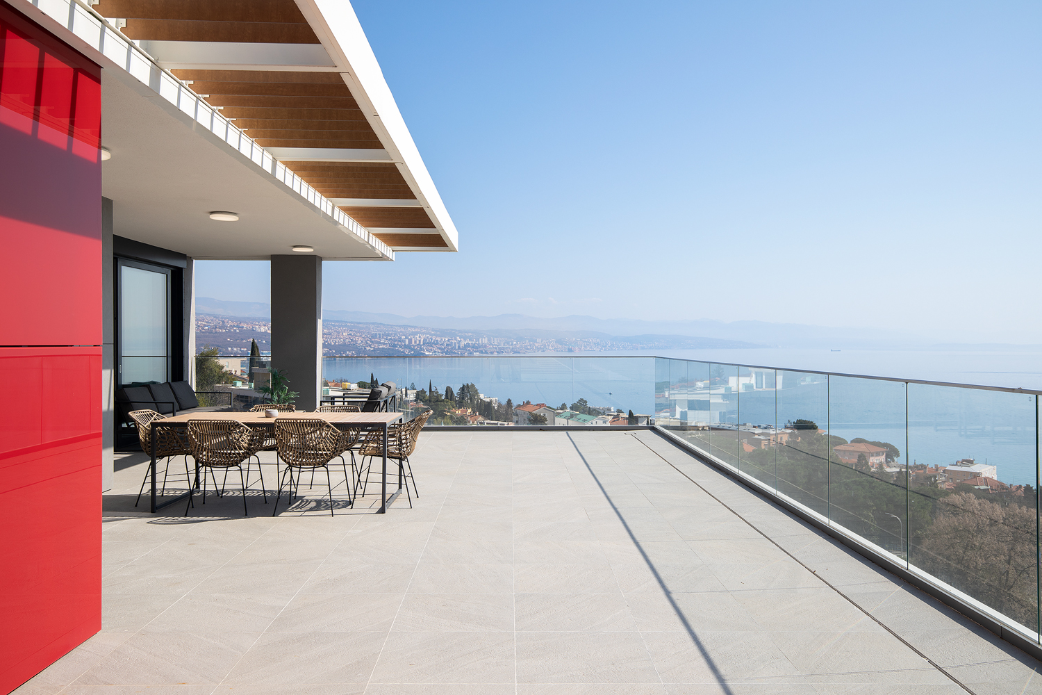 - Pogodnosti / Sadržaji: Klima uređaj, Kompletno opremljena kuhinja sa svim aparatima i posuđem, Kućni ogrtači i papuče, Luksuzan namještaj, Paket proizvoda za kupanje i njegu, Parking, Pogled na more, Posteljina i ručnici, Sat/TV, Sef, Smart Home tehnologija, Spavaća soba odvojena od dnevnog boravka, Sušilo za kosu, Terasa, Wi-Fi