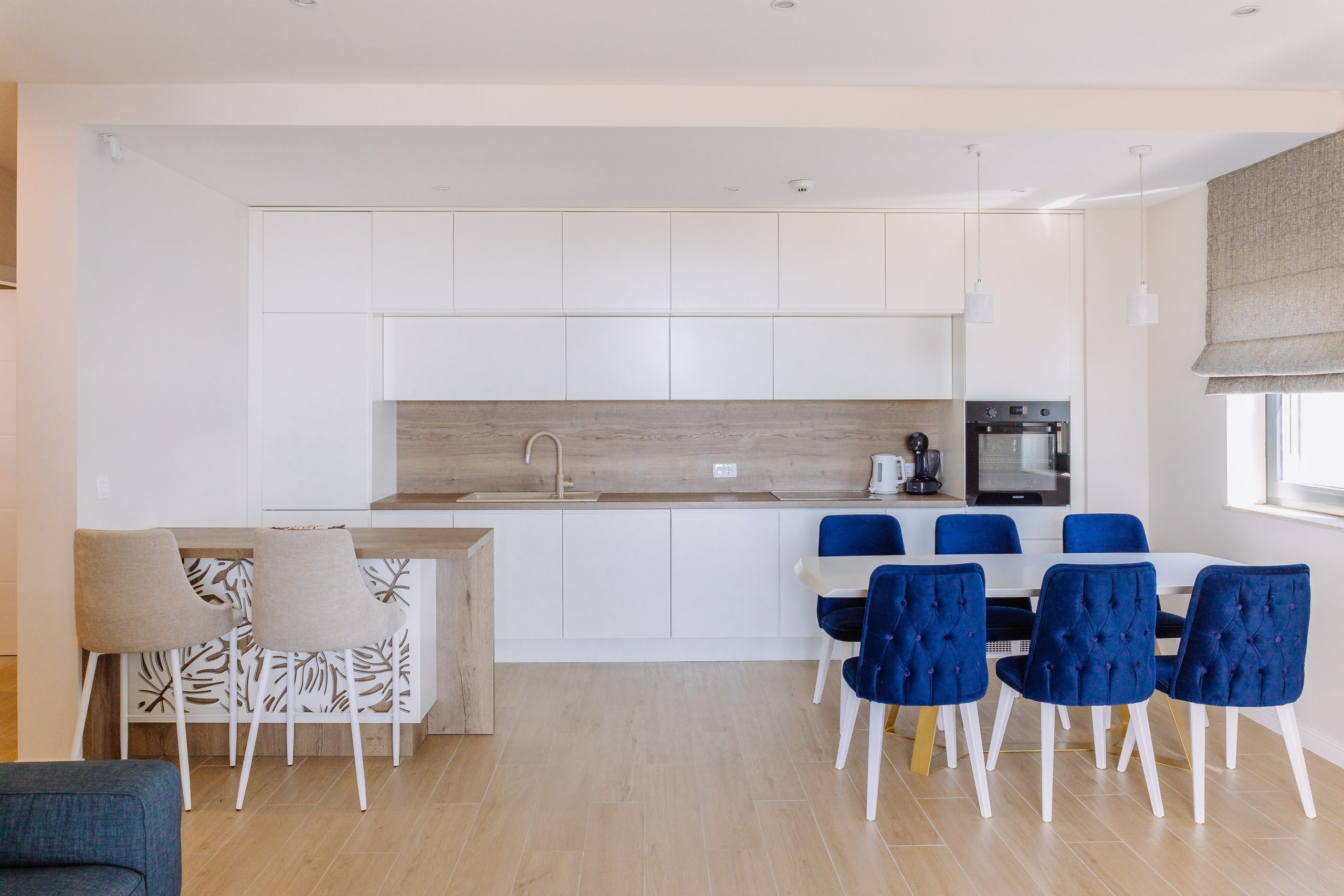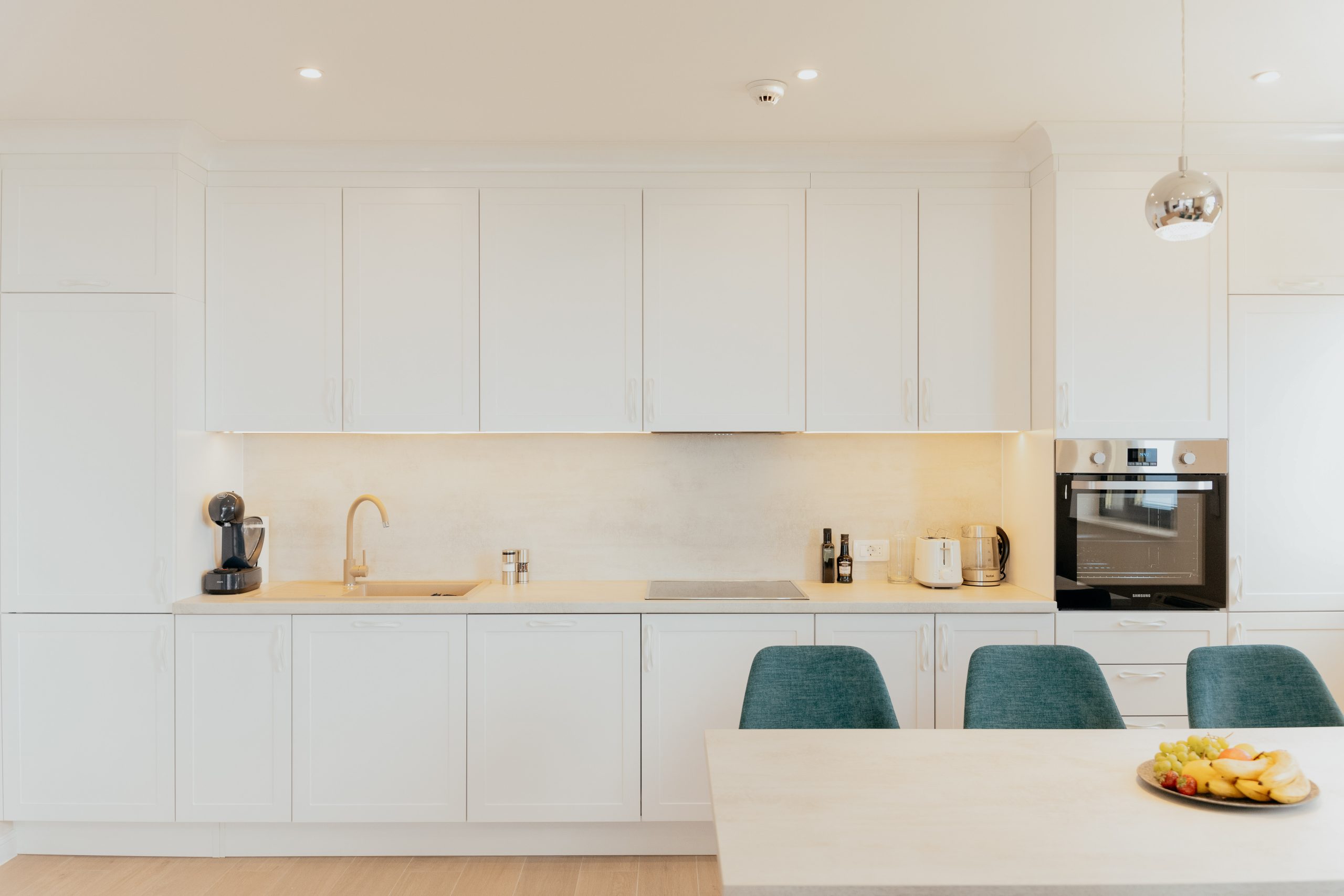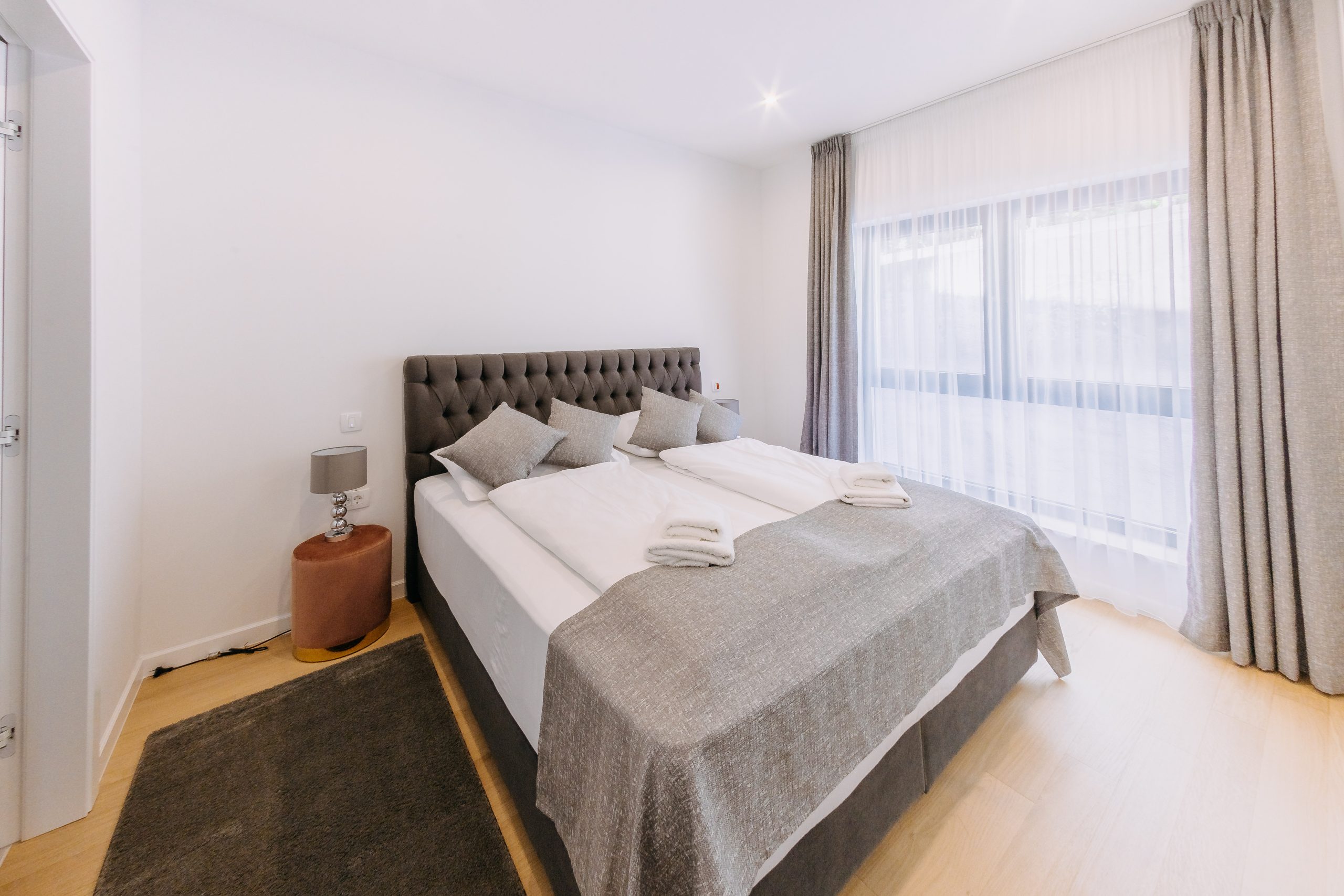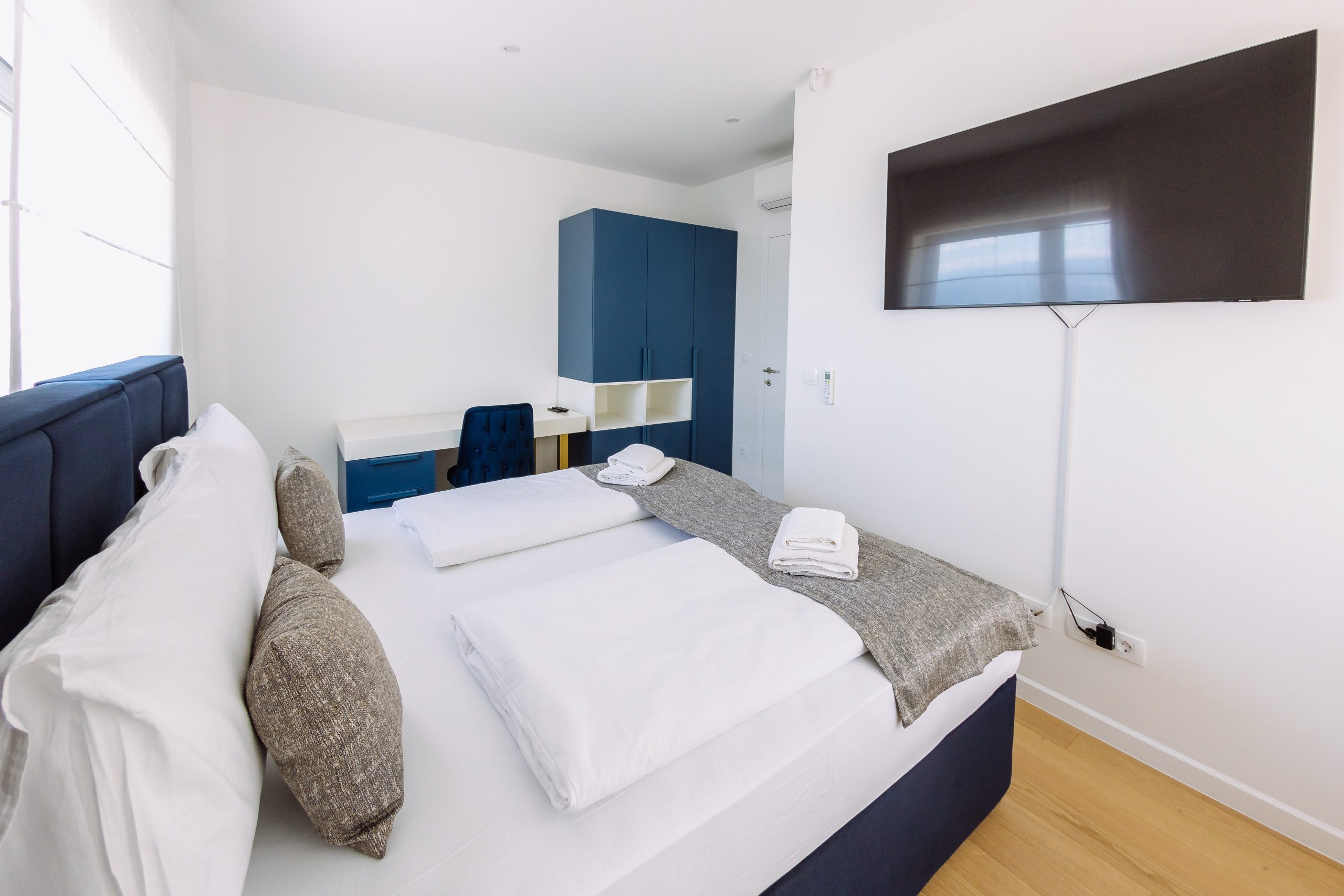 - Pogodnosti / Sadržaji: Klima uređaj, Kompletno opremljena kuhinja sa svim aparatima i posuđem, Kućni ogrtači i papuče, Luksuzan namještaj, Paket proizvoda za kupanje i njegu, Parking, Pogled na more, Posteljina i ručnici, Sat/TV, Sef, Smart Home tehnologija, Spavaća soba odvojena od dnevnog boravka, Sušilo za kosu, Terasa, Wi-Fi